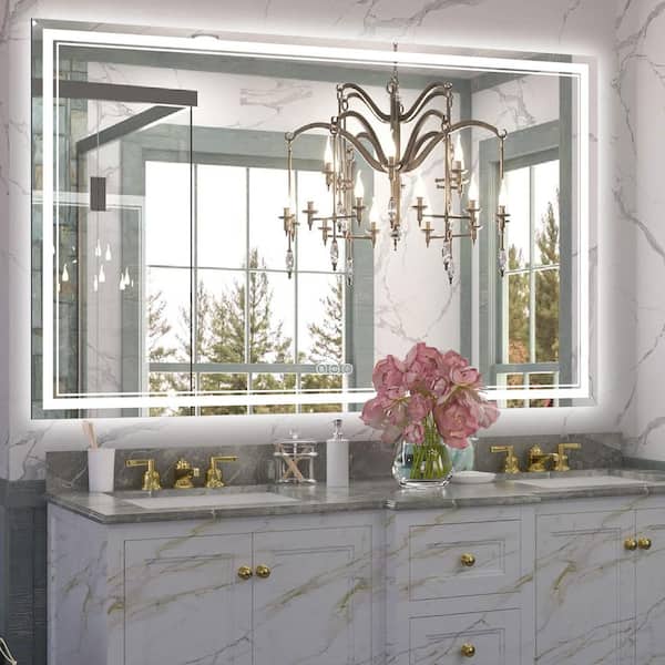 36 in. W x 60 in. H Rectangular Frameless LED Front Light and Backlit Anti-Fog Wall Mirror Bathroom Vanity Mirror