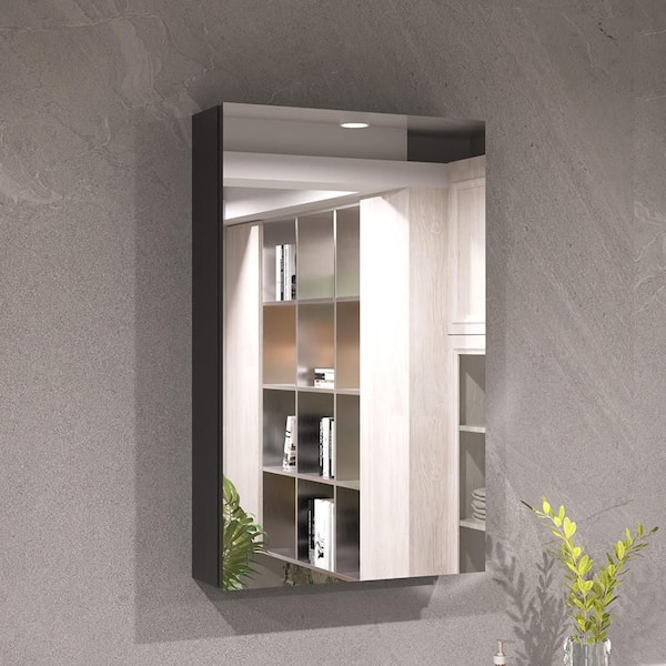 Keen 15 in. x 24 in. Framless Recessed or Surface-Mount Rectangular Aluminum Medicine Cabinet with Mirror in Matte Black