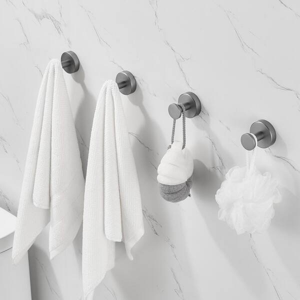 NestPro 4-Pieces Wall Mounted J-Hook Round Bathroom Robe/Towel Hook in Gun Grey