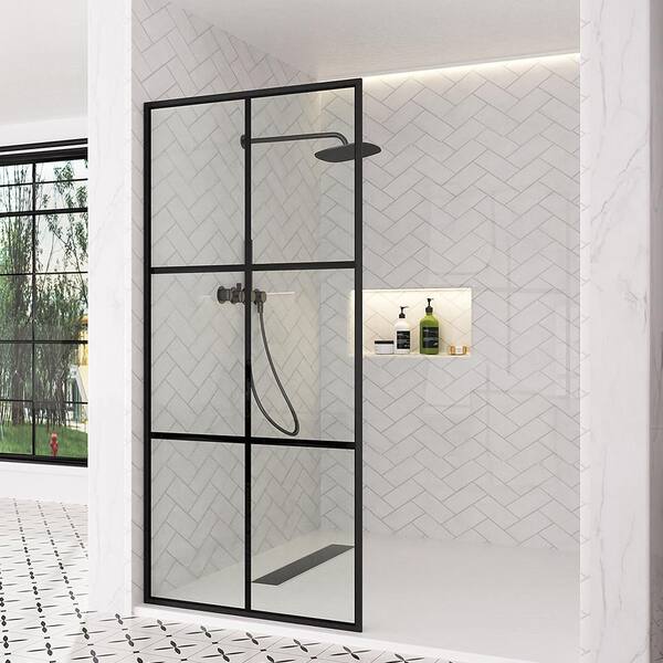 Nyssa 34 in. W x 73 in. H Framed Fixed Shower Screen Door in Matte Black with 5/16 in. (8mm) Patterned Glass
