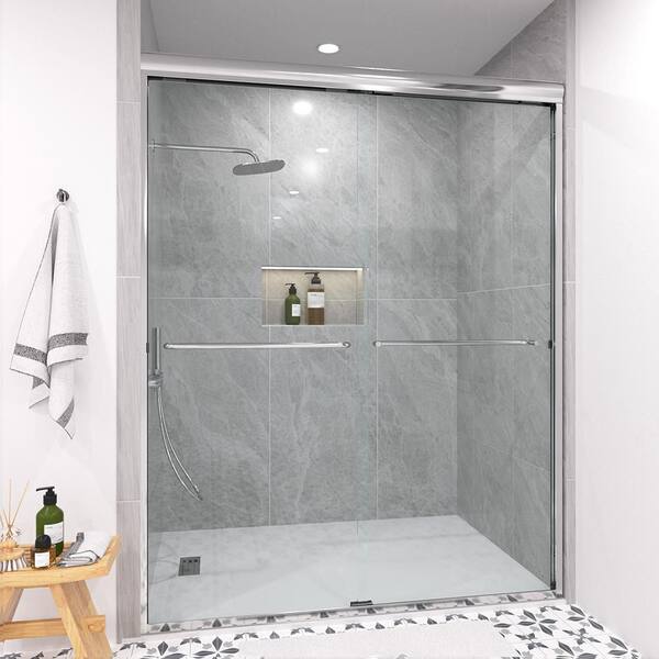 Shine 56-60 in. W x 72 in. H Semi-Frameless Sliding Shower Door in Chrome with 5/16 in. Clear Tempered Glass