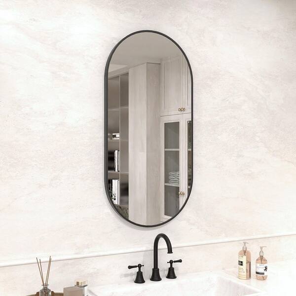 Velora 18 in. W x 36 in. H Oval Framed Wall Bathroom Vanity Mirror in Matte Black