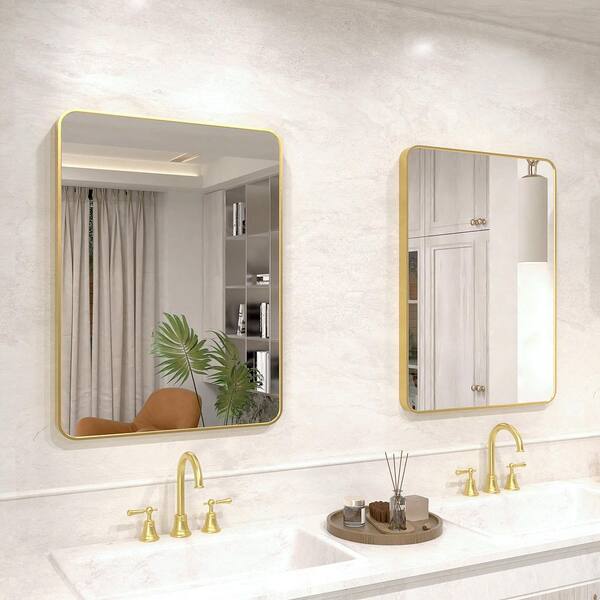 Vista 32 in. W x 24 in. H Rectangular Framed Wall Bathroom Vanity Mirror in Brushed Gold