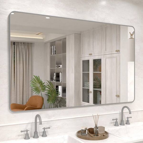 Vista 60 in. W x 36 in. H Rectangular Framed Wall Bathroom Vanity Mirror in Gun Grey