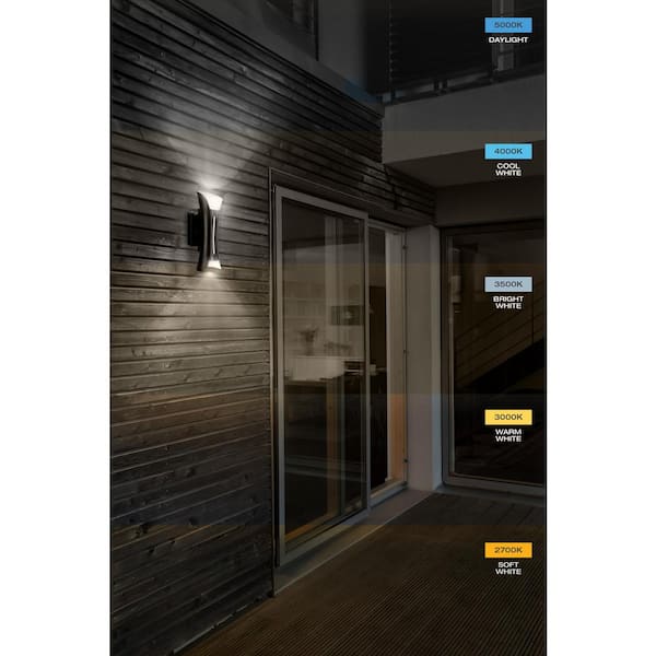 Sylvania 12.5 in. 1-Light Black LED Wall Lantern Fixture with Sensor Integrated LED Ceiling Light