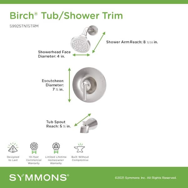 Birch HydroMersion Single Handle Tub and Shower Faucet Trim Kit in Satin Nickel 1.5 GPM (Valve Not Included)