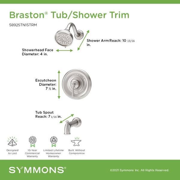 Braston HydroMersion Single Handle Tub and Shower Faucet Trim Kit in Satin Nickel 1.5 GPM (Valve Not Included)