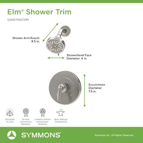 Elm Single Handle Wall Mount Shower Trim Kit in Satin Nickel (Valve Not Included) 1.5 GPM