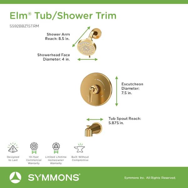 Elm Single Handle Wall Mounted Tub and Shower Trim Kit with Diverter in Brushed Bronze (Valve Not Included) 1.5 GPM