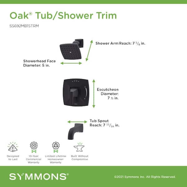 Oak HydroMersion Single Handle Tub and Shower Faucet Trim Kit with Volume Control in Matte Black