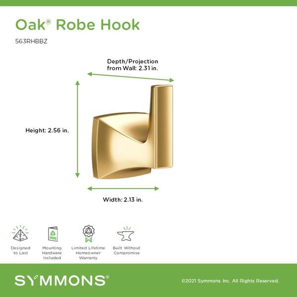 Oak Wall Mounted J-Hook Robe/Towel Hook in Brushed Bronze
