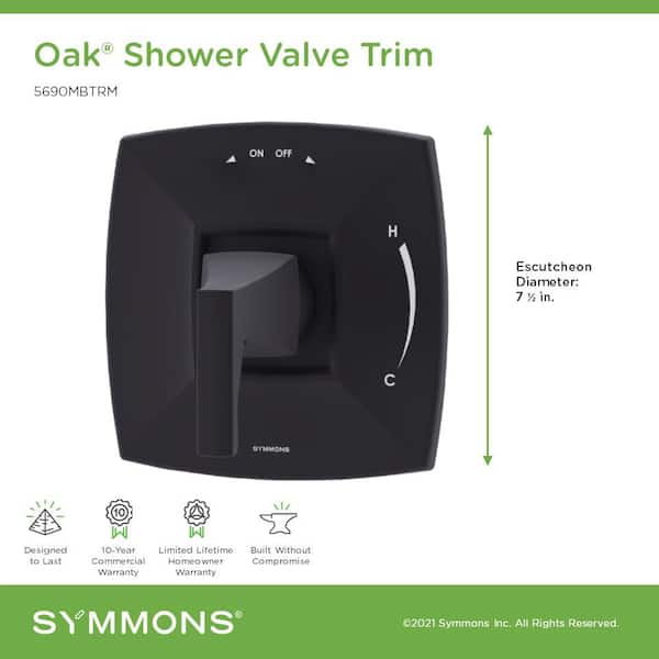 Oak Wall Mounted Single Handle Shower Valve Trim in Matte Black (Valve Not Included)