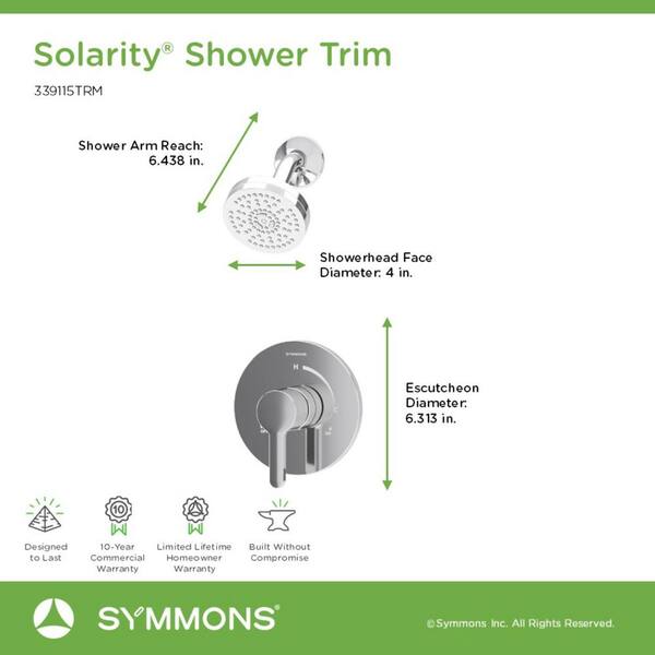 Solarity HydroMersion Single Handle Shower Trim Kit with Escutcheon (Valve Not Included)