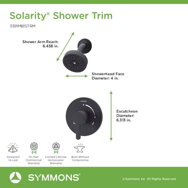 Solarity HydroMersion Single Handle Shower Trim Kit with Escutcheon (Valve Not Included)