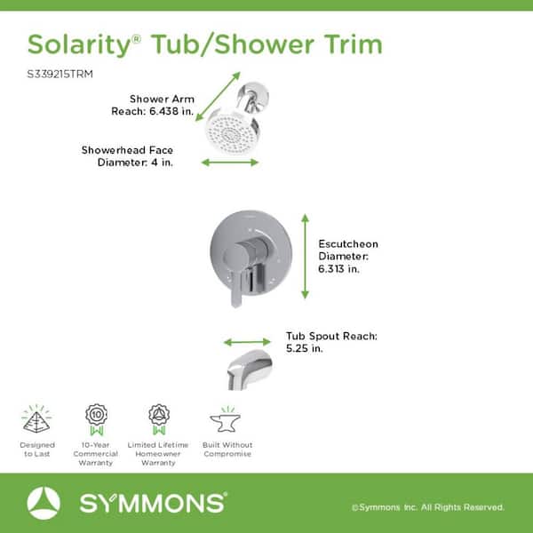 Solarity HydroMersion Single Handle Tub and Shower Faucet Trim Kit with Integral Diverter (Valve Not Included)