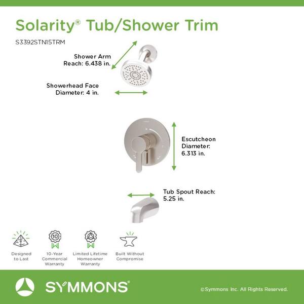 • Solarity tub and shower trim available in three finishes