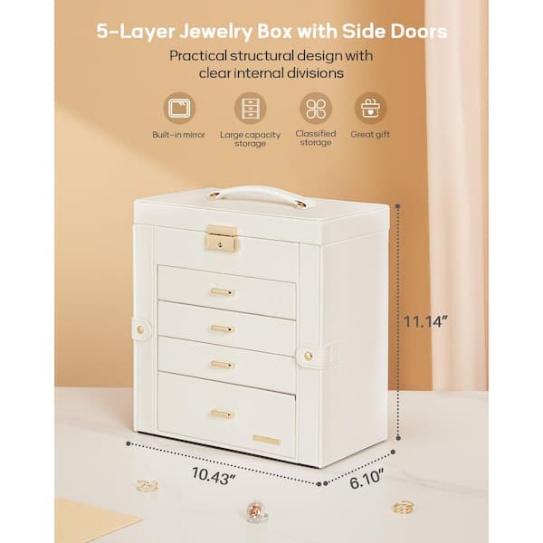 Synthetic Leather Huge Jewelry Box Mirrored Watch Organizer