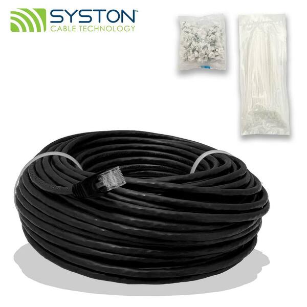 150 ft. Black CMR Cat 5e 350MHz 24AWG Solid Bare Copper Ethernet Network Wire Data Cable - RJ45 Plug Heat Resistant