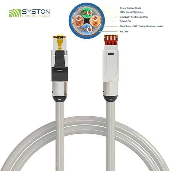 170 ft. White CAT8 CMR 22 AWG Ethernet Patch Cable - 2000MHz 40GB Solid Bare Copper with Tinned Copper Braid Shielding