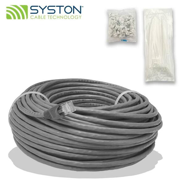 200 ft. Gray CMR Cat 5e 350MHz 24AWG Solid Bare Copper Ethernet Network Wire Data Cable - RJ45 Plug Heat Resistant
