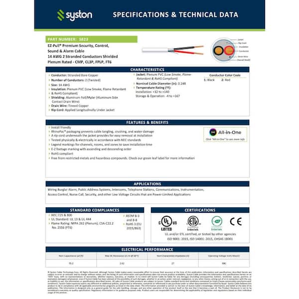 250 ft. 14/2 White CMP Shielded Stranded Copper Security/Alarm/Control Wire, UV Resistant Highest Fire Rated Low Voltage