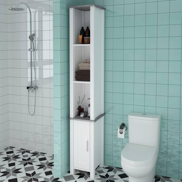 TALA 11.81 in. W x11.81 in. H x 67.72 in. H H D White Over-the-Toilet Storage 1 door 3 storey bathroom side cabinet