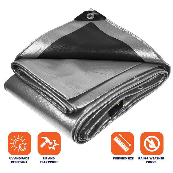 10 ft. x 10 ft. Silver/Black 10 Mil Heavy Duty Polyethylene Tarp, Waterproof, UV Resistant, Rip and Tear Proof