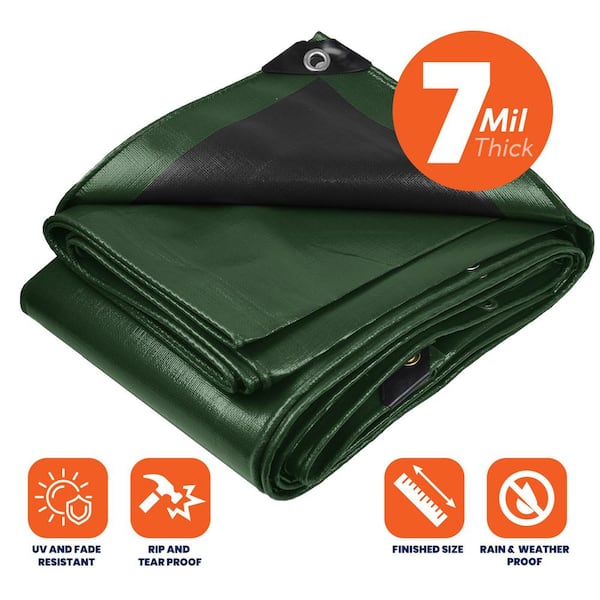 18 ft. x 24 ft. Green/Black 7 Mil Heavy Duty Polyethylene Tarp, Waterproof, UV Resistant, Rip and Tear Proof