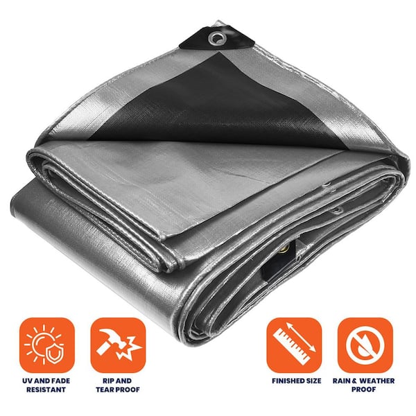 18 ft. x 24 ft. Silver/Black 14 Mil Heavy Duty Polyethylene Tarp, Waterproof, UV Resistant, Rip and Tear Proof