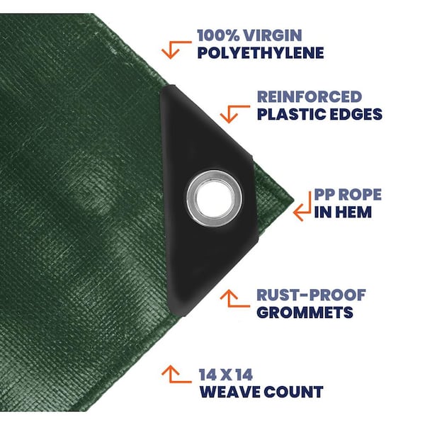 20 ft. x 30 ft. Green/Black 14 Mil Heavy Duty Polyethylene Tarp, Waterproof, UV Resistant, Rip and Tear Proof