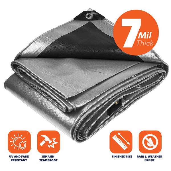 20 ft. x 35 ft. Silver/Black 7 Mil Heavy Duty Polyethylene Tarp, Waterproof, UV Resistant, Rip and Tear Proof