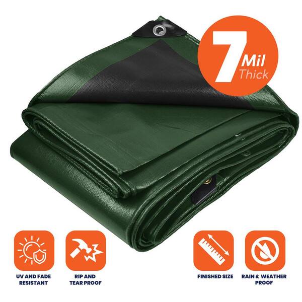 20 ft. x 40 ft. Green/Black 7 Mil Heavy Duty Polyethylene Tarp, Waterproof, UV Resistant, Rip and Tear Proof