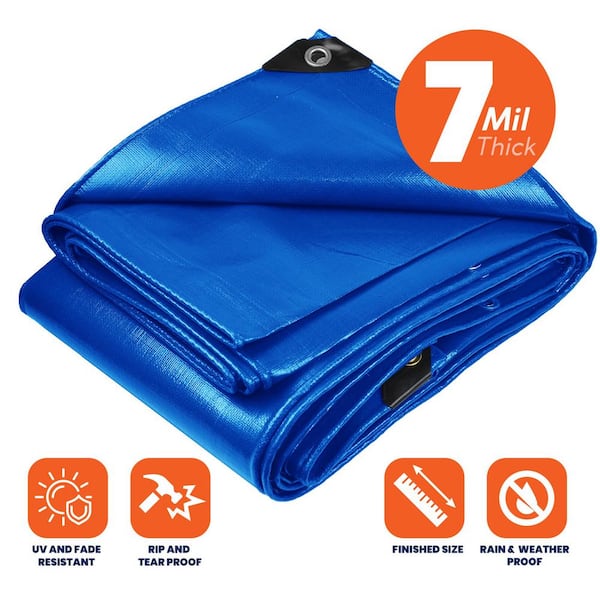 24 ft. x 24 ft. Blue 7 Mil Heavy Duty Polyethylene Tarp, Waterproof, UV Resistant, Rip and Tear Proof