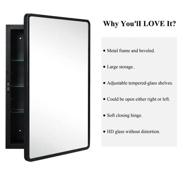 TASeries 20 in. W x 30 in. H Rectangular Aluminum Medicine Cabinet with Mirror