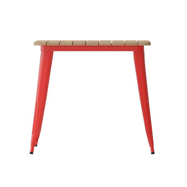 32 in. Square Brown/Red Plastic 4 Leg Dining Table with Steel Frame (Seats 4)