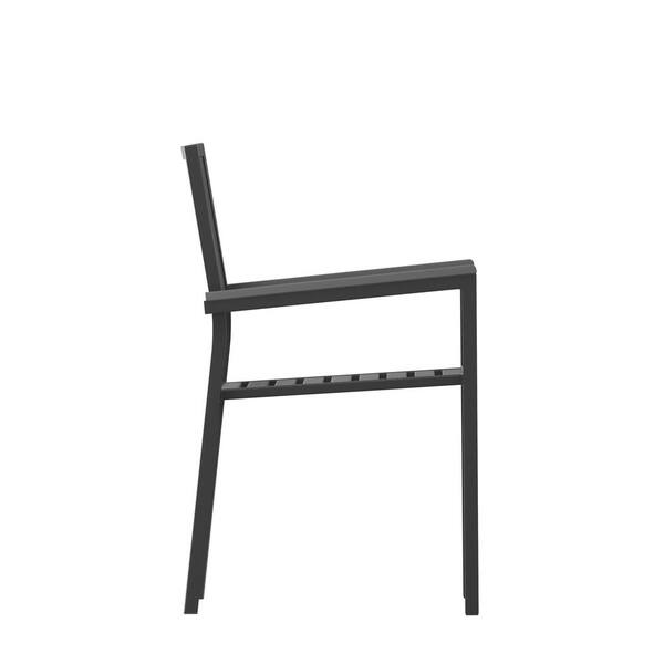 Henson Black Indoor/Outdoor Metal Stacking Club Chairs with Black Poly Resin Slatted Backs in Black (Set of 2)