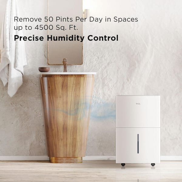 50 pt. 4500 sq. ft. Smart Dehumidifier in. White, Ideal for Basements, Rooms