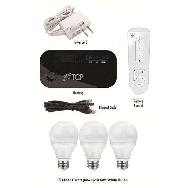 Connected Smart LED Light Bulb Starter Kit with 3 A19 LED Light Bulbs & Remote