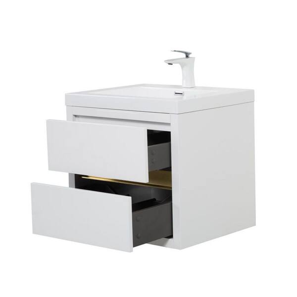24 in. Wall-Mounted Glossy White Bath Vanity with Glossy White Solid Surface Top Assembled