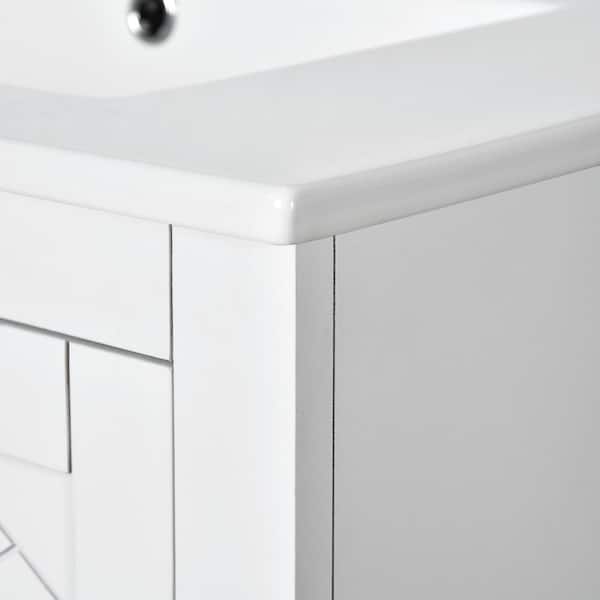 30 in. Single Sink Freestanding White Bath Vanity with White Ceramic Top Unassembled
