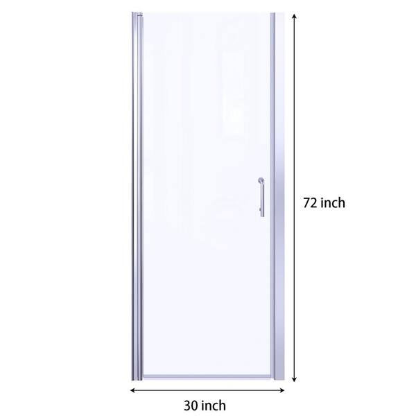 30 in. W x 72 in. H Pivot Semi - Frameless Shower Door in Chrome Finish with Clear Glass