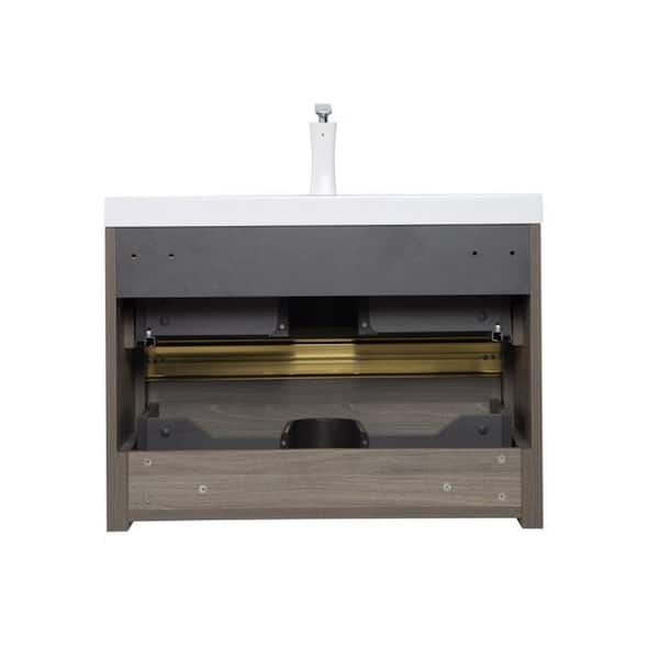 30 in. Wall-Mounted Grey Ash Bath Vanity with Glossy White Solid Surface Top Assembled