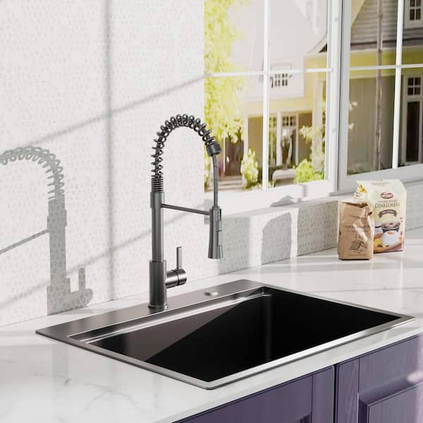 32 in. Drop-in Single Bowl 18-Gauge Gunmetal Black Stainless Steel Kitchen Sink with Faucet and Bottom Grids