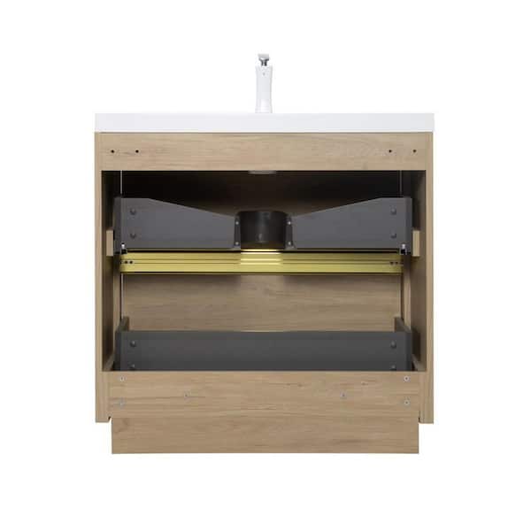 36 in. Freestanding Natural Oak Bath Vanity with Glossy White Solid Surface Top Assembled