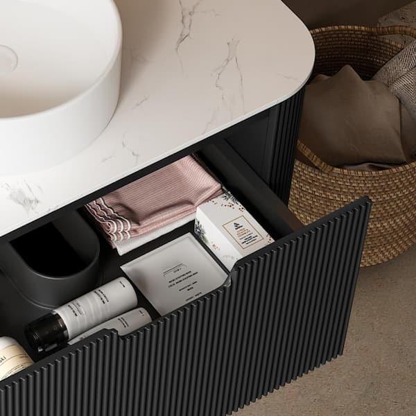 36 in. Single Sink Wall-Mounted Black Bath Vanity with White Engineered Marble Top Assembled