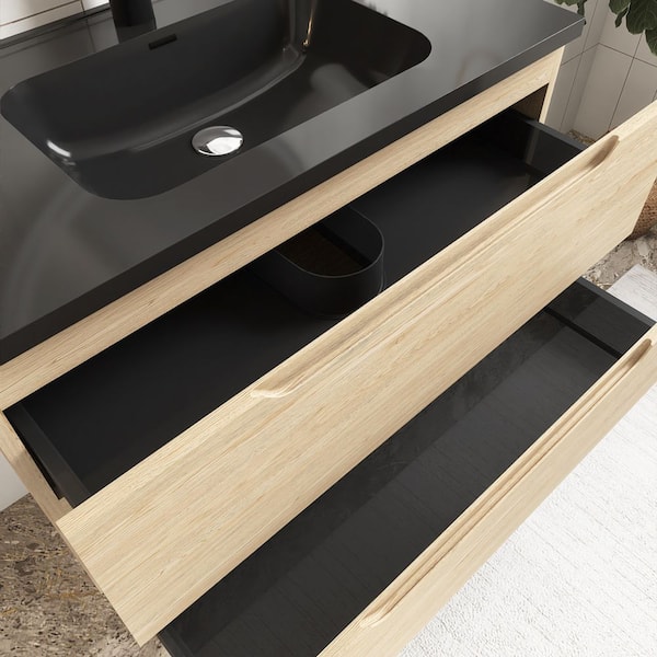 36 in. Wall-Mounted Evita Oak Bath Vanity with Black Quartz sand Top Assembled
