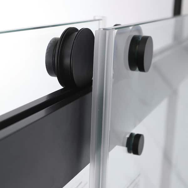 48 in. W x 76 in. H Double Sliding Frameless Shower Door in Matte Black Finish with Clear Glass