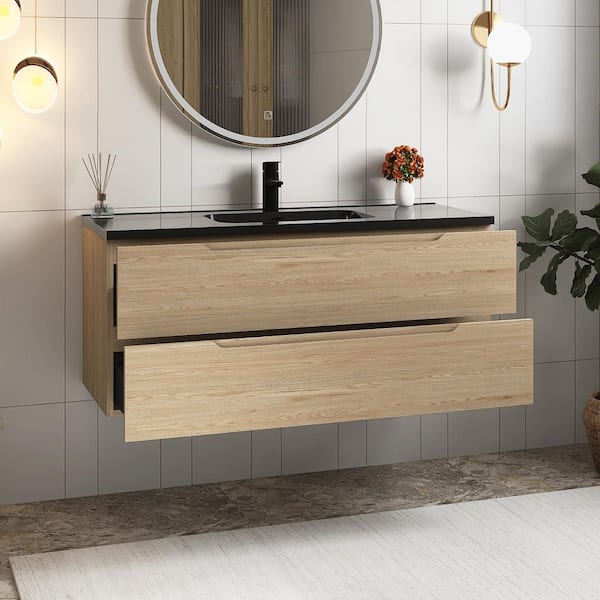 48 in. Wall-Mounted Evita Oak Bath Vanity with Black Quartz sand Top Assembled