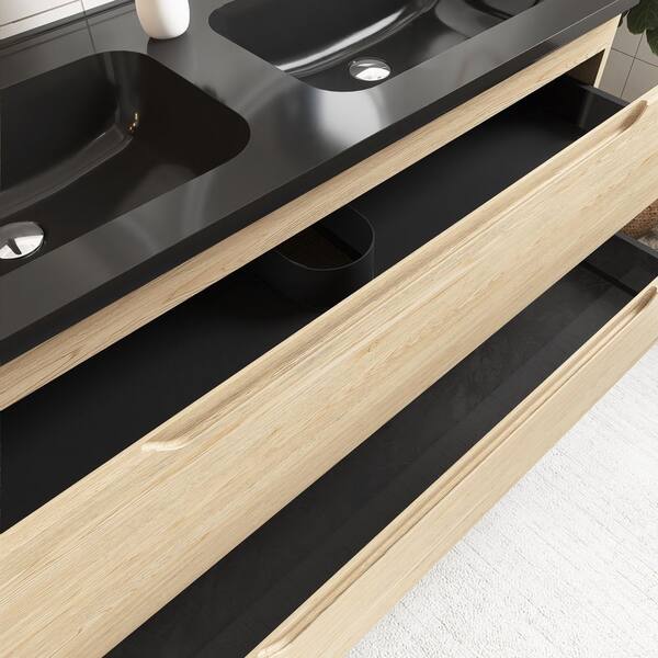 48 in. Wall-Mounted Evita Oak Bath Vanity with Black Quartz sand Top Assembled