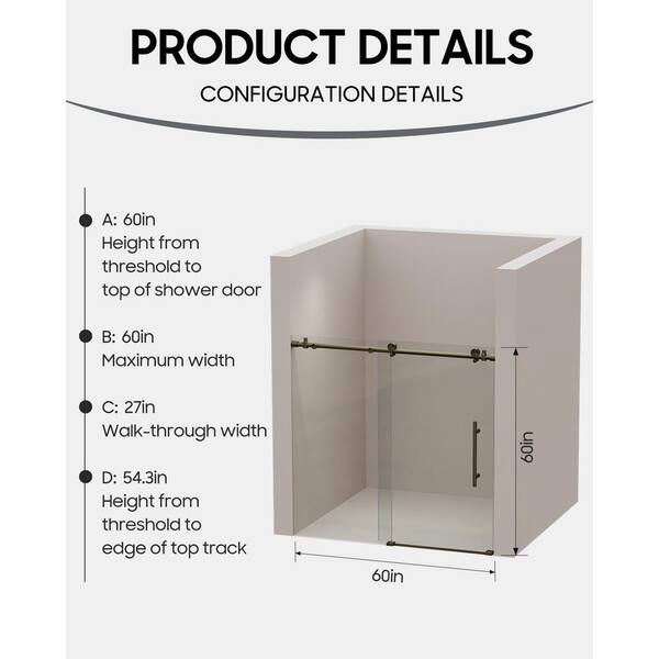 60 in. W x 60 in. H Sliding Tub Door in Gold Finish with Clear Glass